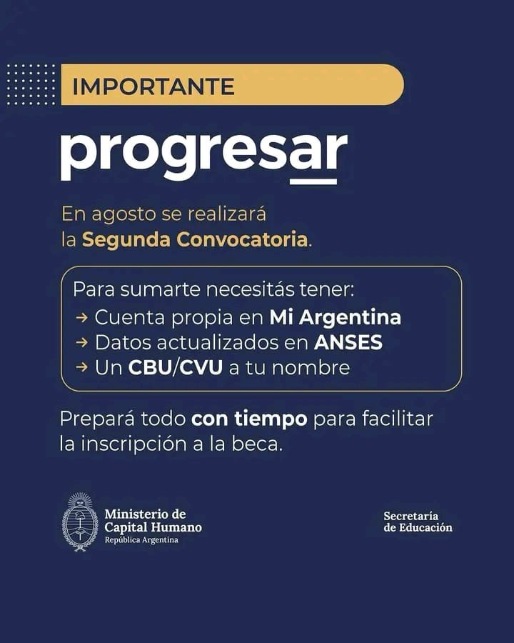 🔹 Tener un CBU o CVU a su nombre, ya que la beca se deposita en una cuenta personal.